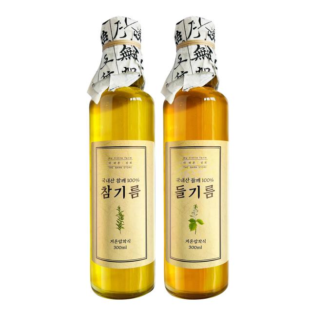 (더바른)국내산 저온압착 참기름 300ml+들기름 300ml 선물세트